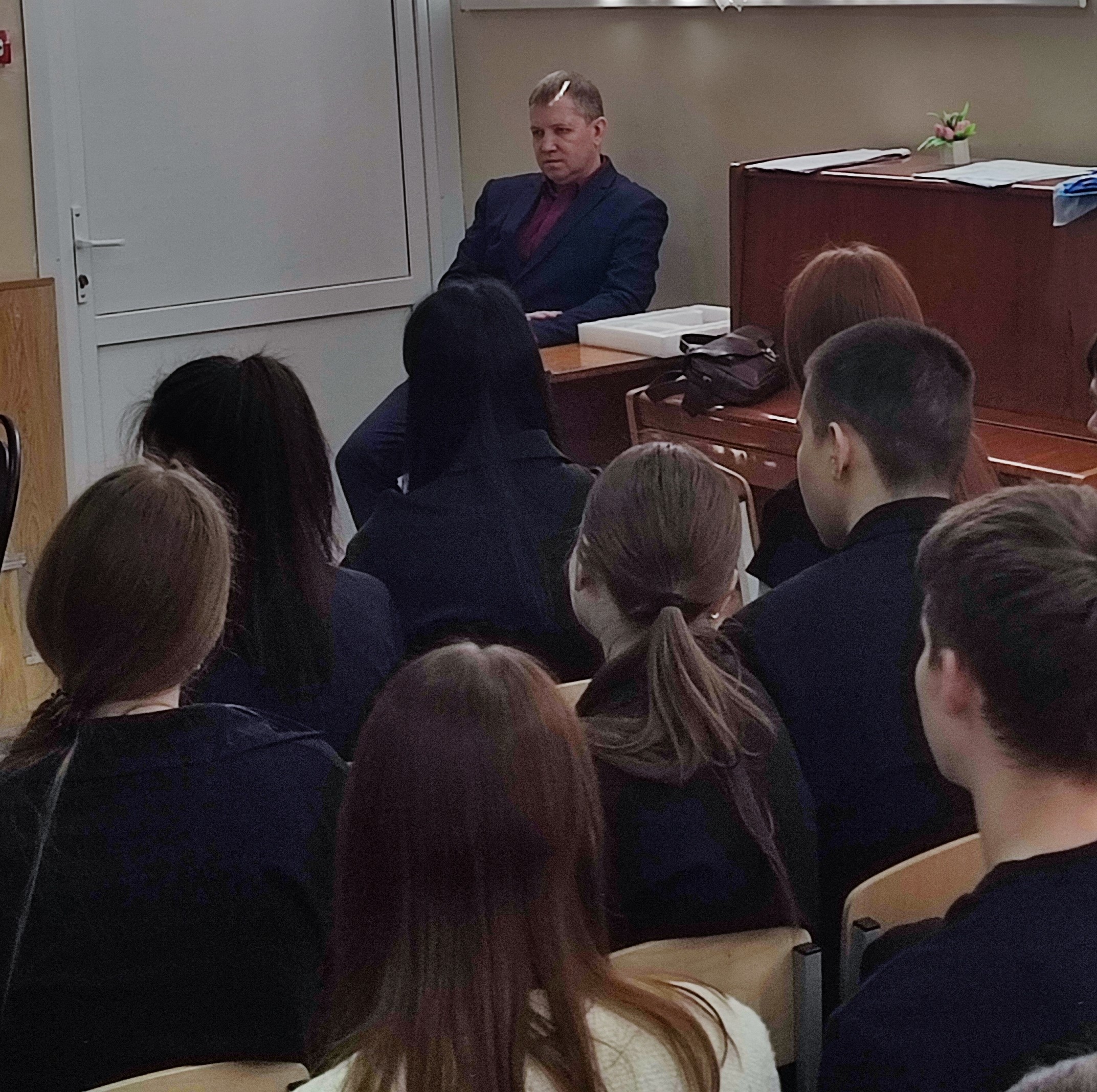 Фотогалерея от 17.04.2025 — 15.04.2025 г. в рамках «Час правовых знаний» на тему «Правовая система, ответственность несовершеннолетних» перед учащимися 10 - 11 кл. МБОУ «Средняя общеобразовательная школа № 56» выступил судья Ленинского районного суда г. Ульяновска Ефремов И.Г.